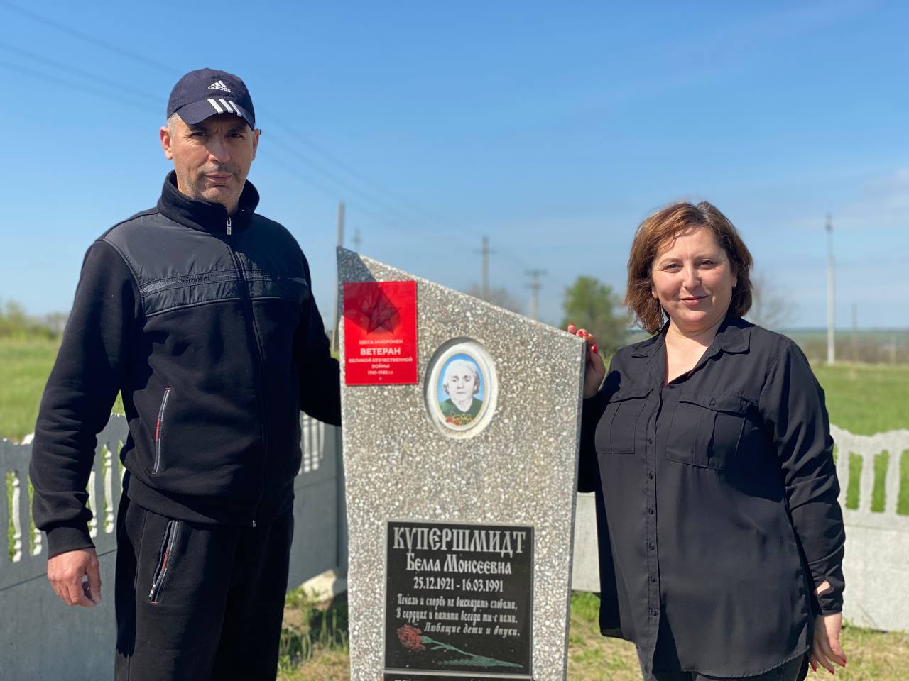 Надписи на табличках гласят: «Здесь захоронен ветеран Великой Отечественной войны 1941 -1945 гг.». Таблички установили гражданский активист Валерий Кысса, главный специалист отдела по развитию молодежной политики управления молодежи и спорта Гагаузии Любовь Сакалы и внук фронтовиков Иосифа и Евы Гимельфарб, житель Комрата Леонид Гимельфарб.